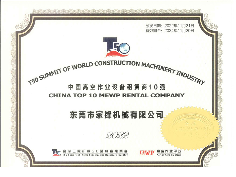 東莞市家鋒機(jī)械有限公司成立于2016年,是專業(yè)的高空作業(yè)平臺租賃、銷售服務(wù)商,擁有徐工、中聯(lián)、吉尼、捷爾杰等國內(nèi)外知名品牌的高空作業(yè)設(shè)備八千多臺,連續(xù)四屆榮膺“中國高空作業(yè)設(shè)備租賃商十強(qiáng)企業(yè)”及“中國高空作業(yè)平臺租賃業(yè)十大品牌”,并于2021年首次榮膺“中國工程機(jī)械租賃商十強(qiáng)”,是立足華南、輻射全國、規(guī)模大、服務(wù)優(yōu),極具競爭力和影響力的企業(yè)。短短幾年,已相繼與世界機(jī)械巨頭徐工集團(tuán)、中聯(lián)重科達(dá)成戰(zhàn)略合作。